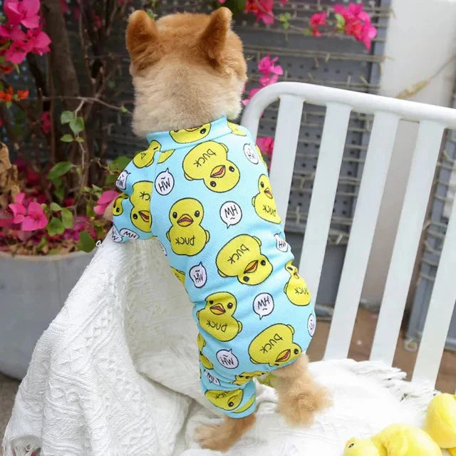 These soft and cute puppy pajamas are perfect for keeping your small dog or cat comfortable and protected. The one-piece jumpsuit design features a variety of adorable prints and patterns, making it a fun addition to your pet's wardrobe. The stretchy, breathable fabric ensures a snug fit for easy wear.